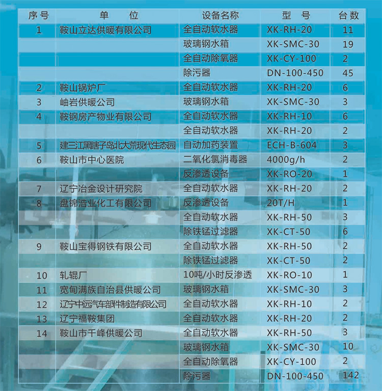 水處理設備系列|鞍山市益水環保設備有限公司銷售業績